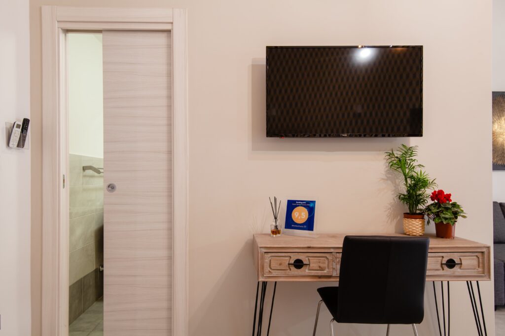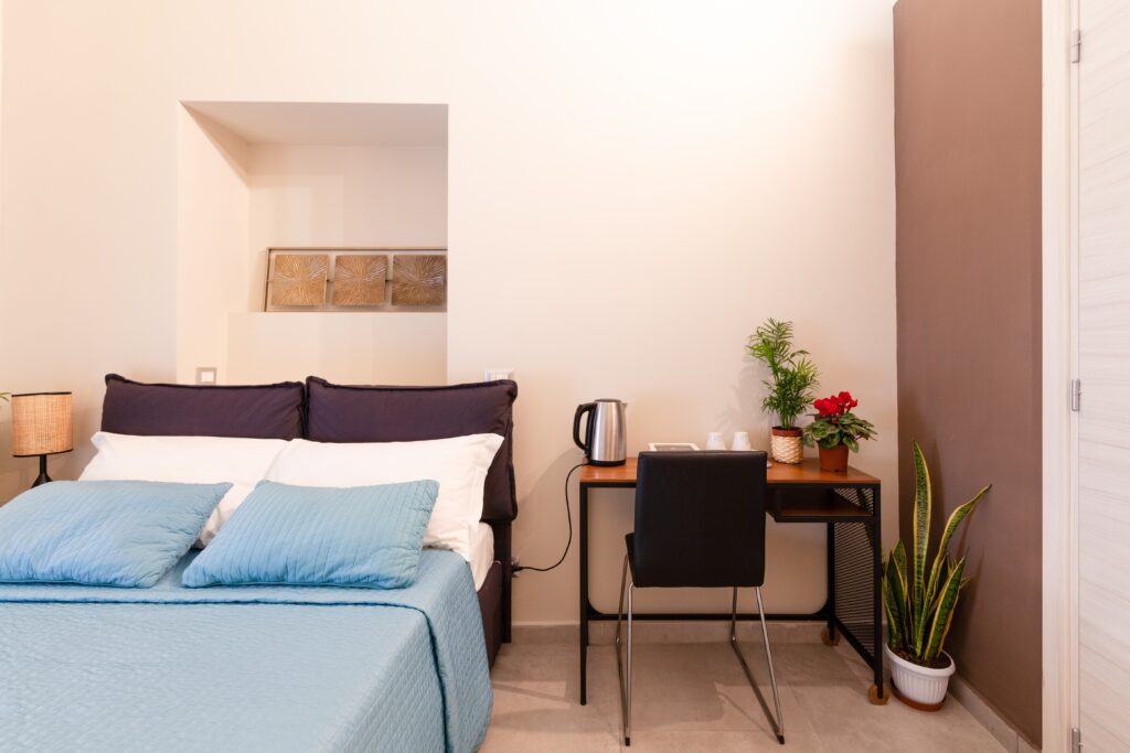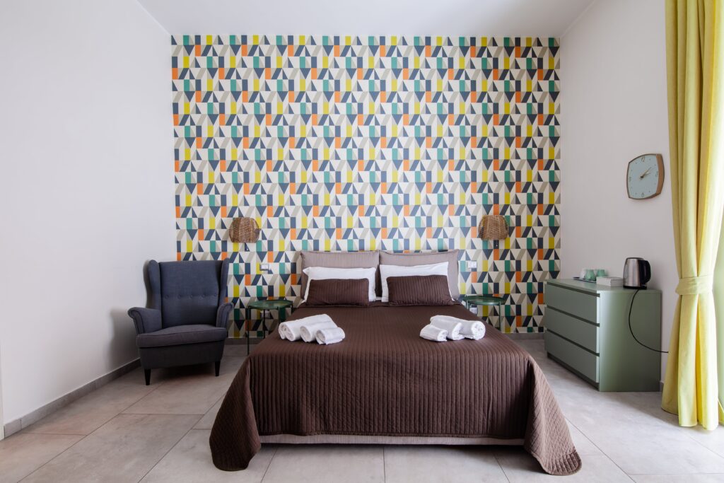 La struttura è composta da cinque camere da letto ampie e in stile moderno, con bagno privato completo. Tre sono matrimoniali e due quadruple con divano letto matrimoniale e tutte sono dotate di armadio, scrivania e aria condizionata. Gli ospiti possono godere di una sala relax e un terrazzo esterno ad uso comune.