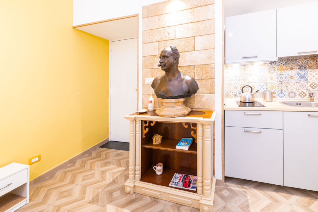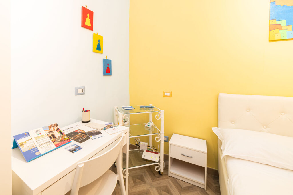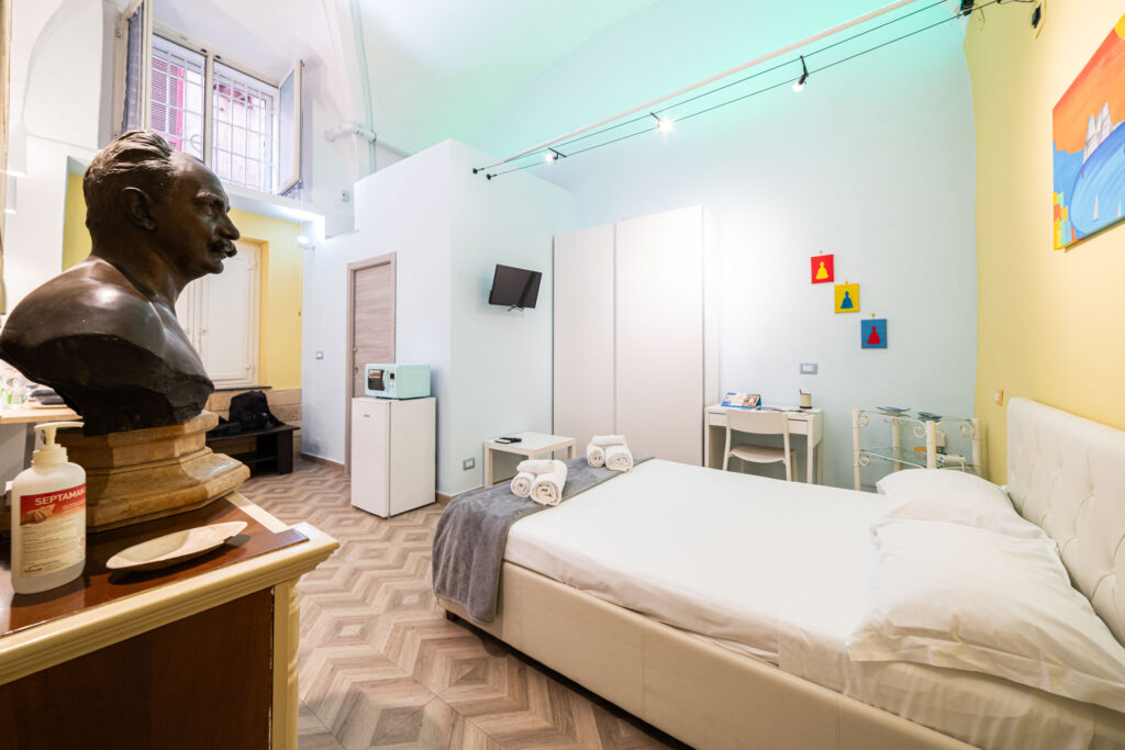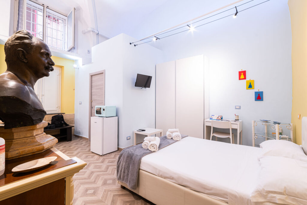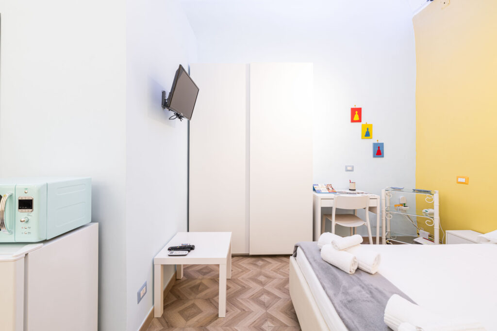 Room21 è un monolocale interno palazzo piano terra composto da un unico ambiente con letto matrimoniale, angolo cottura e bagno completo con doccia. La struttura è completa di tutto per trascorrere un piacevole soggiorno a Napoli, la posizione strategica consente di visitare a piedi le principali attrazioni della città.